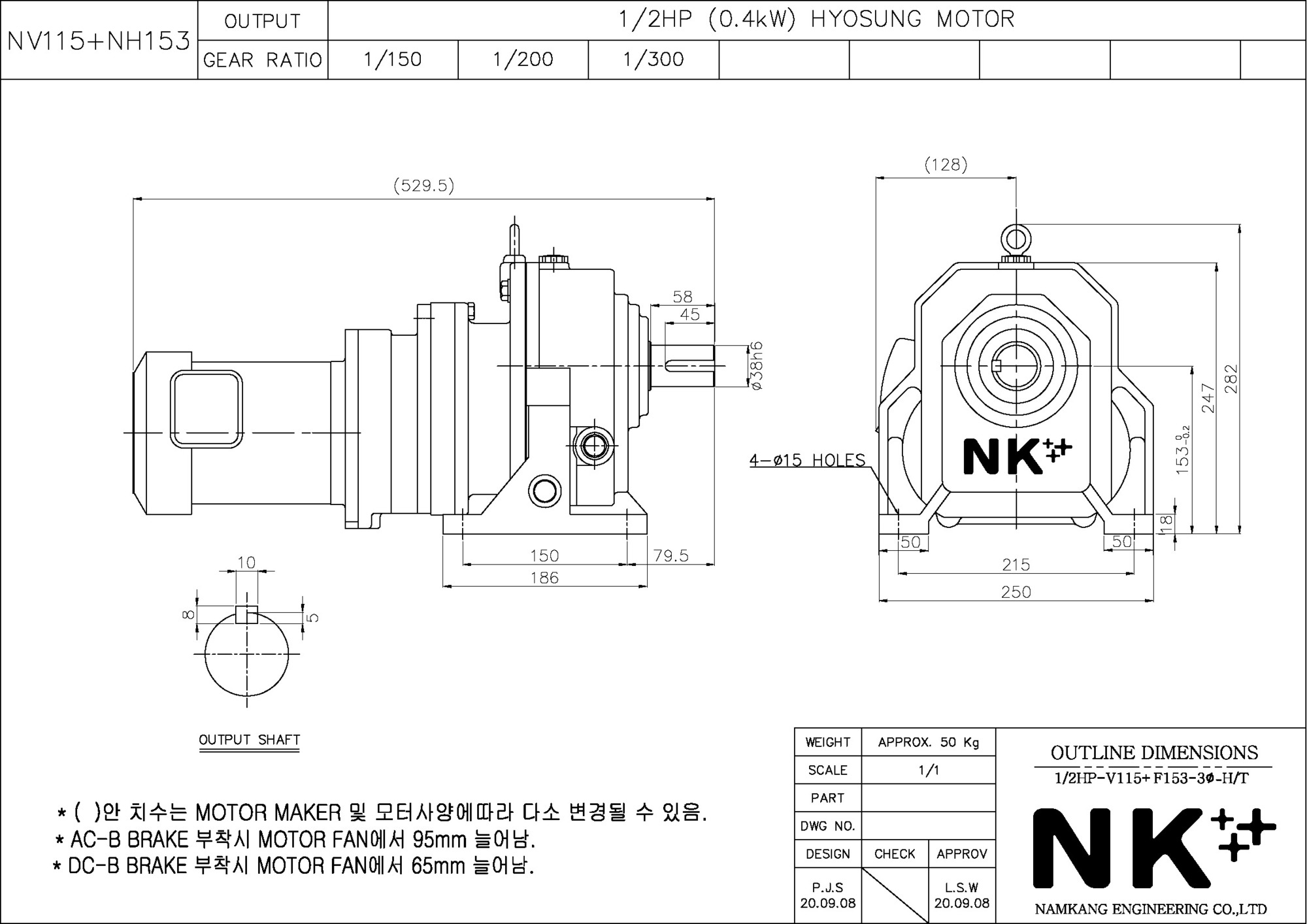 | 3 | 0.4KW | NV115+NH153 | 150~300 | 1/2HP | 2D CAD | 수평 | ||