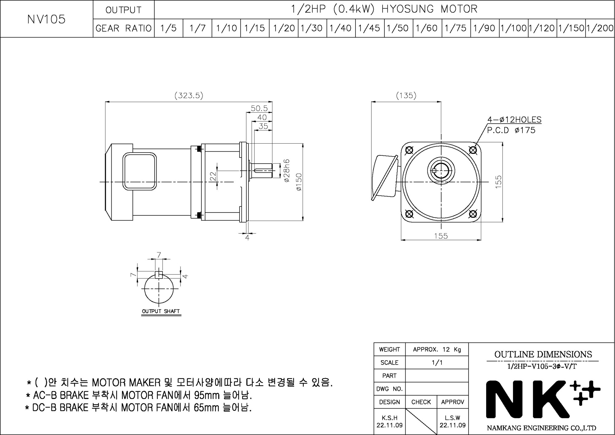 | 6 | 0.4KW | NV105 | 5~200 | 1/2HP | 2D CAD | 수직 | ||