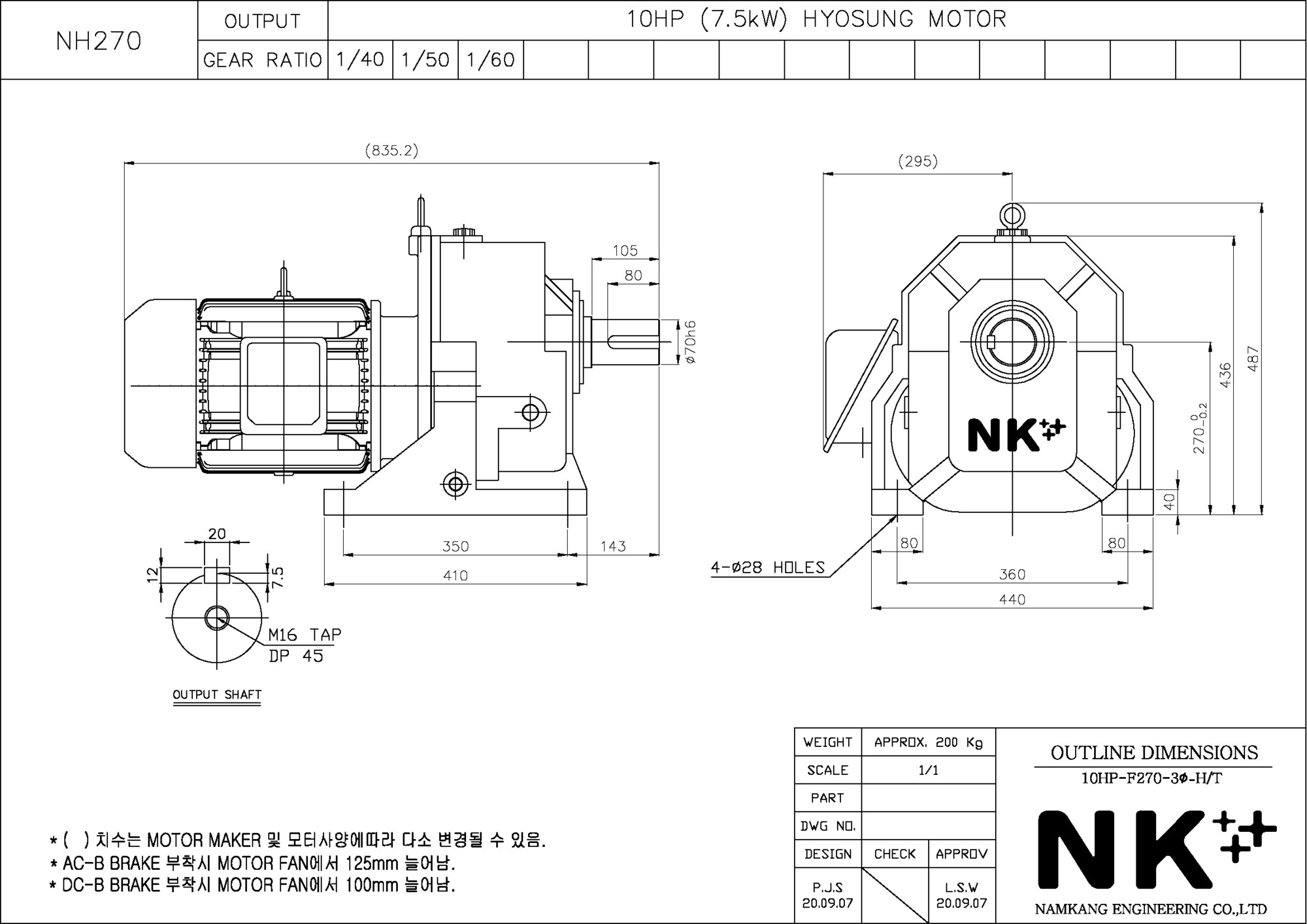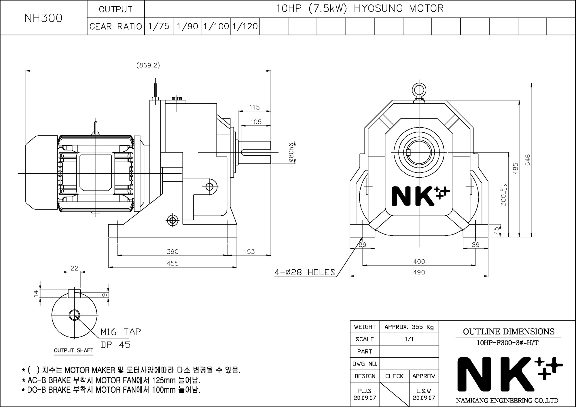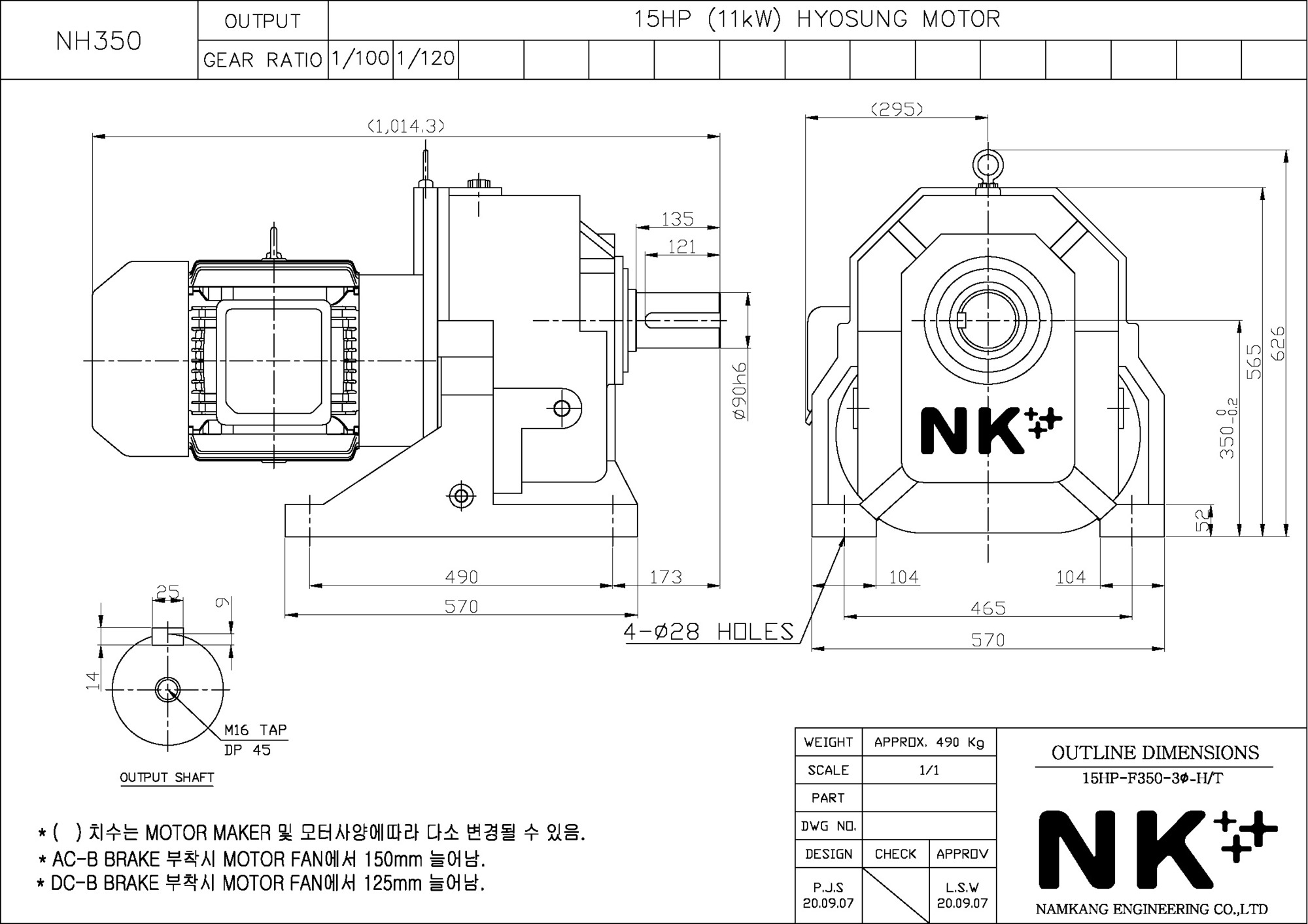 - NK PLUS MOTOR (남강 자사모터), 효성모터, 하이젠모터 적용